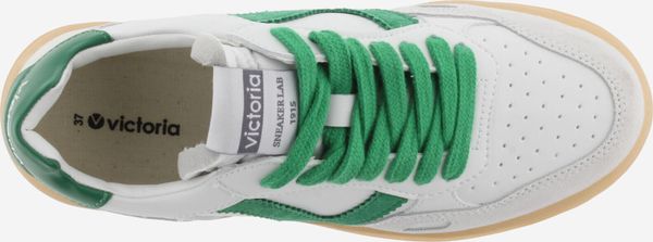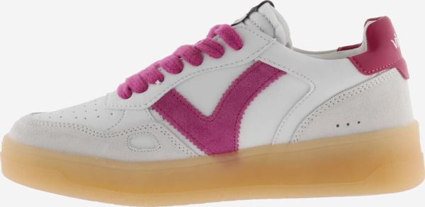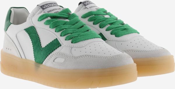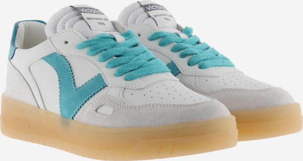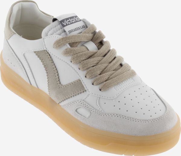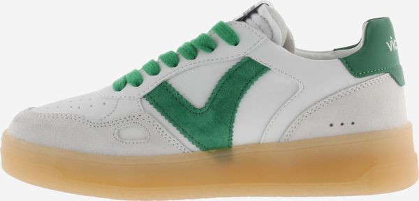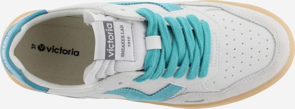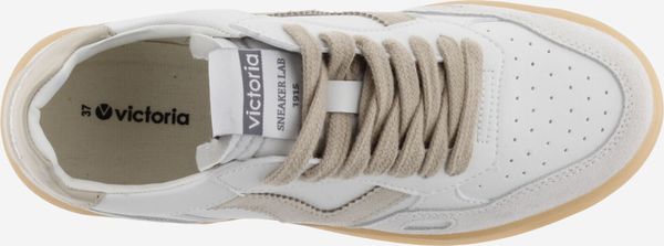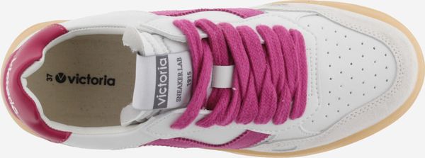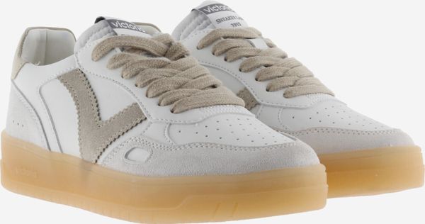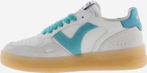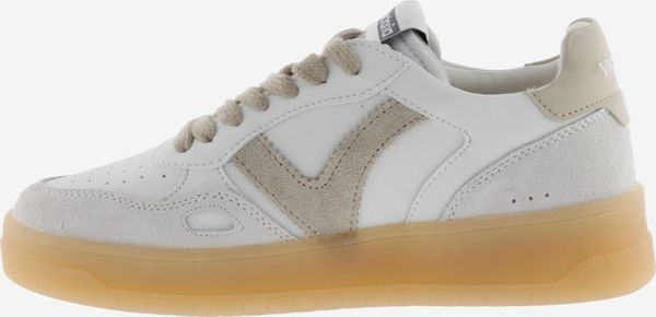 Die Seúl Efecto Piel & Serraje Sneaker von Victoria vereinen Stil und Komfort in einem sportlichen Design. Diese Unisex-Sportschuhe präsentieren sich in einem eleganten Weiß mit einem Finish in Lederoptik, das durch farbige und Veloursleder-Elemente akzentuiert wird. Das seitliche Victoria-"V" und die kontrastreich gestaltete Ferse mit einem geprägten Markenlogo verleihen den Schuhen eine harmonische und moderne Optik.