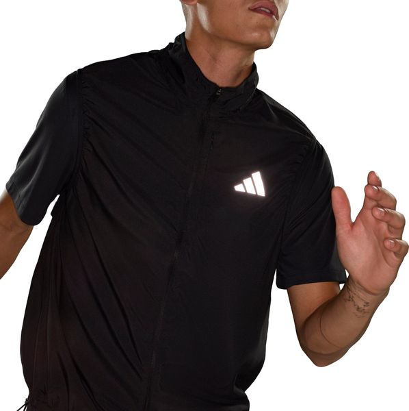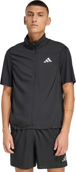 Ein besonderes Highlight ist die Handytasche mit Reißverschluss, die sicherstellt, dass wichtige Gegenstände während des Laufens stets griffbereit sind. Der weitenregulierbare Saum bietet zusätzliche Anpassungsmöglichkeiten, um die Passform weiter zu individualisieren. Reflektierende Performance-Logos sorgen für mehr Sichtbarkeit und Sicherheit bei Läufen in der Dämmerung oder Dunkelheit. Mit ihrem schlichten, aber stilvollen Design und dem dezent eingearbeiteten adidas Branding steht die Weste für Qualität und sportliche Innovation.