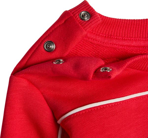 Der Jogger zeichnet sich durch seine reguläre Passform aus, die für optimale Bewegungsfreiheit beim Spielen, in der Schule oder beim Sporttraining sorgt. Der mittelhohe Bund der Trainingshose bietet sicheren Halt, während der gerippte Rundhalsausschnitt des Oberteils dem Outfit einen stilvollen Akzent verleiht. Ob für einen Tag im Park oder einen entspannten Ausflug, dein Kind wird sich in diesem Jogginganzug rundum wohlfühlen und voller Energie sein.