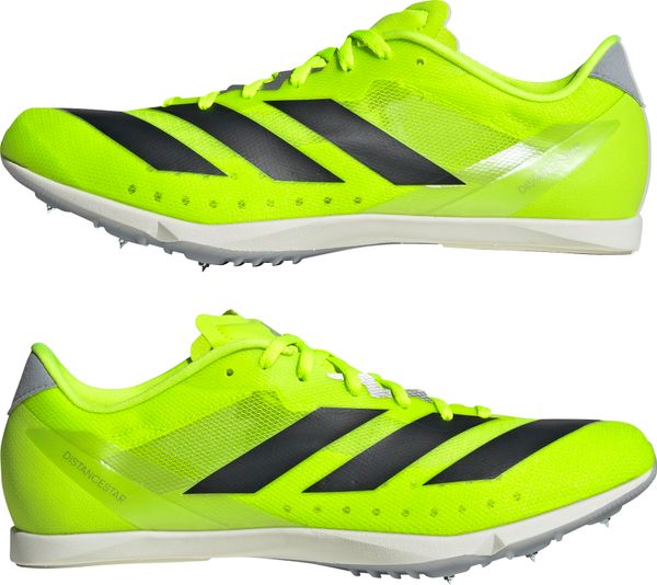 Die Adizero Distancestar Schuhe von adidas sind der Inbegriff von Geschwindigkeit und Leistung, speziell entwickelt für Läufer, die ihre Bestzeiten auf der Bahn erreichen wollen. Mit einem Gewicht von nur 177 g und einer Sprengung von 2 mm bieten diese Schuhe die perfekte Balance zwischen Leichtigkeit und Stabilität. Die reguläre Passform und das schnürbare Design sorgen für einen sicheren Sitz, während das atmungsaktive Synthetik-Obermaterial ein komfortables Tragegefühl garantiert, egal ob bei kurzen Sprints oder längeren Rennen.