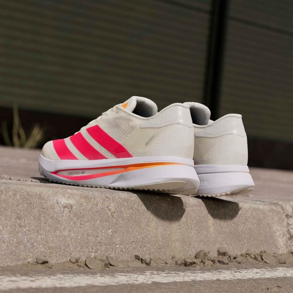 Mit einer regulären Passform und einem sicheren Schnürverschluss bieten die Adizero SL2 optimalen Halt. Das Gewicht von nur 238 g (Größe GB 8,5) trägt zusätzlich zur Leichtigkeit bei, während die 9 mm Sprengung zwischen Ferse und Vorfuß für eine natürliche Abrollbewegung sorgt. Die strapazierfähige Gummiaußensohle gewährleistet zudem exzellenten Grip auf unterschiedlichen Untergründen, sodass du dich voll und ganz auf deine Performance konzentrieren kannst.