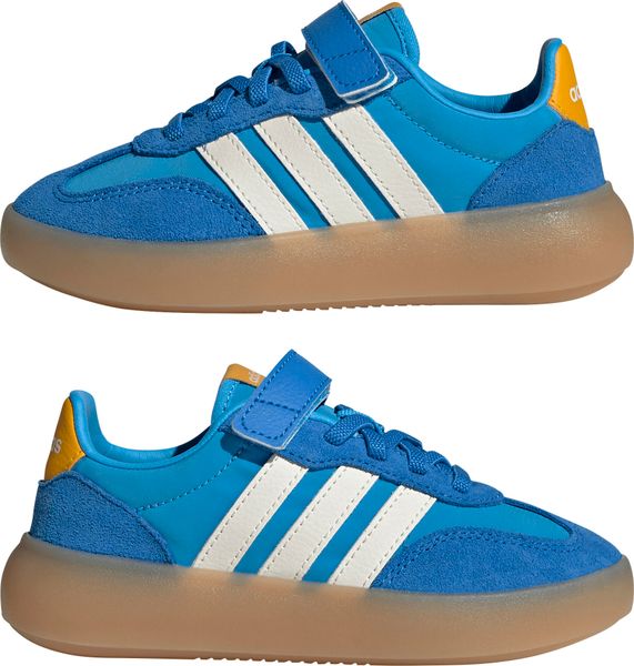 Die adidas Barreda Decode Schuhe für Kinder sind die idealen Begleiter für den Alltag, sei es auf dem Weg zur Schule, beim Spielen oder beim Laufen. Diese Sneaker kombinieren Funktionalität mit einem stilvollen Design, das sowohl Kindern als auch Eltern gefällt. Das Obermaterial aus hochwertigem Leder und Textil wird durch Wildleder-Overlays ergänzt, die nicht nur für einen modernen Look sorgen, sondern auch zusätzliche Strapazierfähigkeit bieten. Die reguläre Passform gewährleistet optimalen Tragekomfort, während die elastischen Schnürsenkel und der praktische Klettverschlussriemen das An- und Ausziehen zu einem Kinderspiel machen.