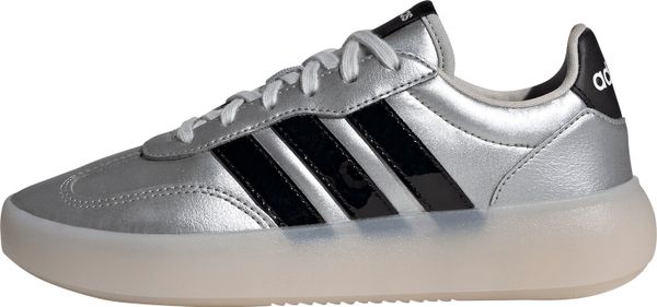 Die Barreda Decode Schuhe Junior von adidas vereinen klassisches Design mit moderner Raffinesse, perfekt für junge Abenteurer, die sowohl im Alltag als auch in der Freizeit stilvoll unterwegs sein möchten. Mit ihrem Obermaterial aus Synthetik in glänzender Metallic-Optik ziehen sie auf dem Spielplatz, in der Schule oder auf den Straßen alle Blicke auf sich. Die ikonischen 3-Streifen sowie die adidas Logos auf Ferse und Zunge verleihen dem Schuh eine sportliche Eleganz, die junge Trendsetter lieben werden.