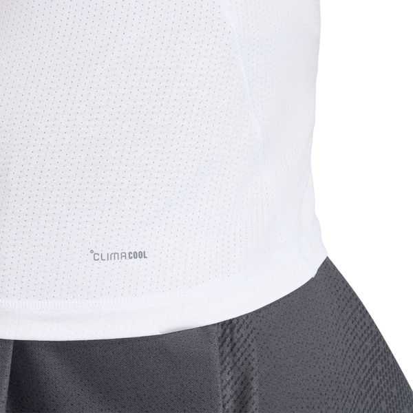 Gefertigt aus 90 % recyceltem Polyester und 10 % Elasthan, bietet das Tanktop nicht nur Nachhaltigkeit, sondern auch ein weiches Tragegefühl, das den ganzen Tag über anhält. Die innovative Climacool-Technologie sorgt durch ihre feuchtigkeitsableitenden Eigenschaften dafür, dass du dich auch bei intensiven Aktivitäten stets trocken und komfortabel fühlst. Die Kombination aus Funktionalität und herausragendem Design macht dieses Tanktop zu einem Must-Have für jeden Tennisliebhaber und Fitnessfan.