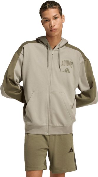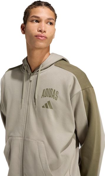 Ein durchgehender Frontreißverschluss ermöglicht ein einfaches An- und Ausziehen, während die Kängurutasche praktischen Stauraum bietet. Die Kapuze mit Kordelzug sorgt für zusätzliche Anpassbarkeit und Schutz vor Wind und Wetter. Der Collegiate-Schriftzug und das dezente adidas Logo auf der Brust verleihen der Jacke einen sportlichen und zugleich eleganten Look. Diese Jacke ist nicht nur ein modisches Statement, sondern auch ein zuverlässiger Begleiter für jede Gelegenheit.