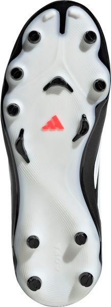 Die gepolsterte Zunge mit einer zusätzlichen Schaumstoffschicht reduziert den Druck der Schnürsenkel und sorgt für ein angenehmes Tragegefühl sowie verbesserte Atmungsaktivität. Eine weiche, gepolsterte Ferse ermöglicht es Kindern, sich voll und ganz auf ihr Spiel zu konzentrieren, ohne von unangenehmen Druckstellen abgelenkt zu werden. Der Schuh ist ideal für feste Böden und Kunstrasenplätze geeignet, was ihn zu einem vielseitigen Begleiter für junge Fußballbegeisterte macht. Das markante adidas Branding verleiht dem Schuh einen stylishen Akzent und macht ihn zur perfekten Wahl für kleine Fußballfans.