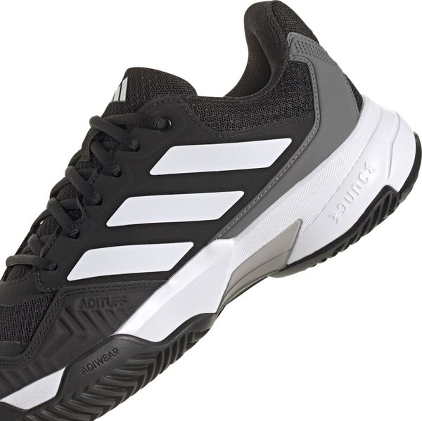 Um dir den nächsten Punkt zu sichern, gibst du alles. Dieser adidas Tennisschuh ist besonders strapazierfähig und sorgt gleichzeitig für maximale Luftzirkulation, damit du auf dem Court dein A-Game bringen kannst. Der abriebfeste Adituff Zehenbereich schützt zusätzlich vor Verschleiß, während das leichte und atmungsaktive Mesh-Obermaterial ein angenehmes Tragegefühl garantiert. Die Kombination aus sicherem Halt und leichter Bounce Dämpfung ermöglicht blitzschnelle Moves und Richtungswechsel. Außerdem optimiert das unterbrochene Fischgrätprofil dein Spiel auf Hartplätzen und gibt dir bei Matches mit hoher Geschwindigkeit den entscheidenden Vorteil. Dieses Produkt ist mit mindestens 20 % recycelten Materialien hergestellt. Die Wiederverwendung bereits vorhandener Materialien hilft uns dabei, Müll zu reduzieren, adidas Abhängigkeit von nicht erneuerbaren Ressourcen einzuschränken und den CO2-Fußabdruck adidas Produkte zu verringern.