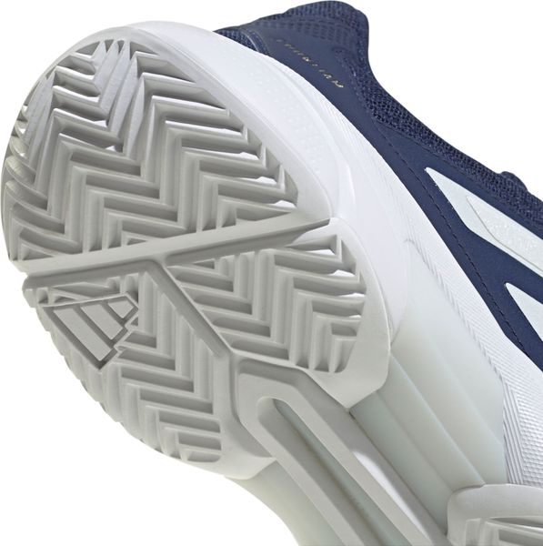 Besonders hervorzuheben ist das Torsion System, das die Bewegungsfreiheit von Rück- zu Vorfuß optimiert und so für maximale Flexibilität sorgt. Der abriebfeste Adituff Zehenbereich schützt vor Verschleiß, während die Adiwear Außensohle mit ihrem unterbrochenen Fischgrätprofil speziell für Hartplätze entwickelt wurde, um dir bei Matches mit hoher Geschwindigkeit den entscheidenden Vorteil zu verschaffen.