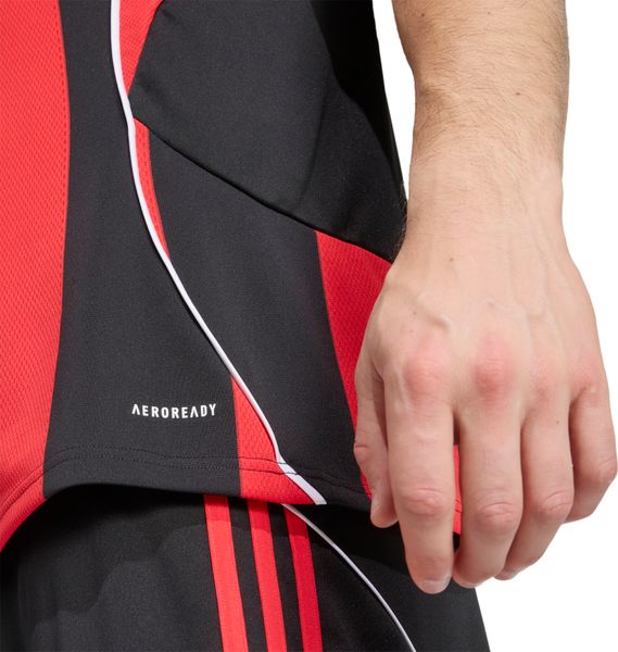 Die Eintracht Frankfurt 2025/2026 Heimtrikot von adidas bringt den beliebten Look der Adler zurück auf das Spielfeld. Mit seinen breiten roten und schwarzen Streifen und den kontrastierenden Paspelierungen verkörpert es den klassischen Stil, den die Fans lieben. Die roten 3-Streifen und die weißen Details setzen zusätzliche Akzente und machen das Trikot zu einem echten Hingucker. Gefertigt aus 100 % recyceltem Polyester, bietet es nicht nur Komfort, sondern auch eine nachhaltige Wahl für umweltbewusste Fans.