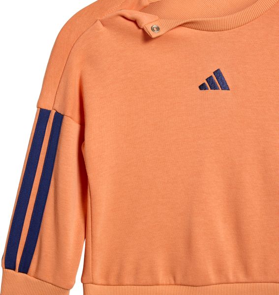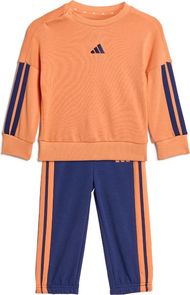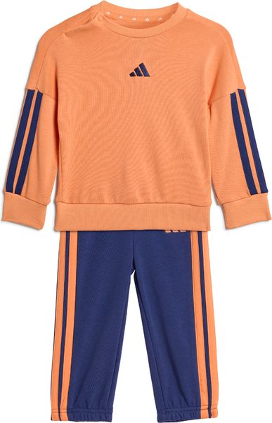 Diese Essentials Jogger von adidas ist die ideale Wahl für aktive Babys und Kleinkinder, die Komfort und Stil vereinen. Gefertigt aus weichem French-Terry-Material, bietet die Jogginghose ein angenehmes Tragegefühl auf der empfindlichen Kinderhaut. Die Rippbündchen sorgen für einen sicheren Sitz, während der elastische Bund der Hose maximale Bewegungsfreiheit garantiert. Mit einem regulären Schnitt und einem Rundhalsausschnitt am Oberteil ist dieses Set optimal für Fitness und Training geeignet.