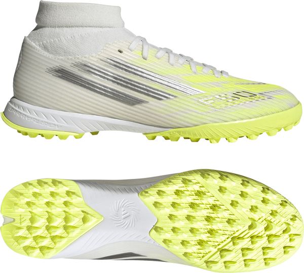 Erlebe das Spiel auf einem neuen Niveau mit den F50 Sparkfusion League Mid Cut Turf Fußballschuhen für Damen von adidas. Diese Fußballschuhe wurden speziell für Kunstrasen entwickelt und bieten eine reguläre Passform, die durch die innovative FUSIONLAST Technologie besonders bequem ist. Diese Technologie ist ideal für Spielerinnen mit einem niedrigeren Rist und einer schmaleren Ferse, da sie eine perfekte Anpassung gewährleistet.