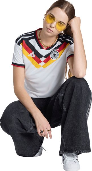 Das Deutschland 26 Heimtrikot von adidas ist inspiriert von den legendären Momenten der Fußballgeschichte und setzt neue Maßstäbe in Sachen Design und Funktionalität. Mit seiner regulären Passform und der Doppelstrick-Konstruktion bietet es optimalen Tragekomfort, egal ob auf dem Spielfeld oder als Fan auf der Tribüne. Das Trikot besteht aus 100 % recyceltem Polyester und unterstreicht damit adidas' Engagement für Nachhaltigkeit.