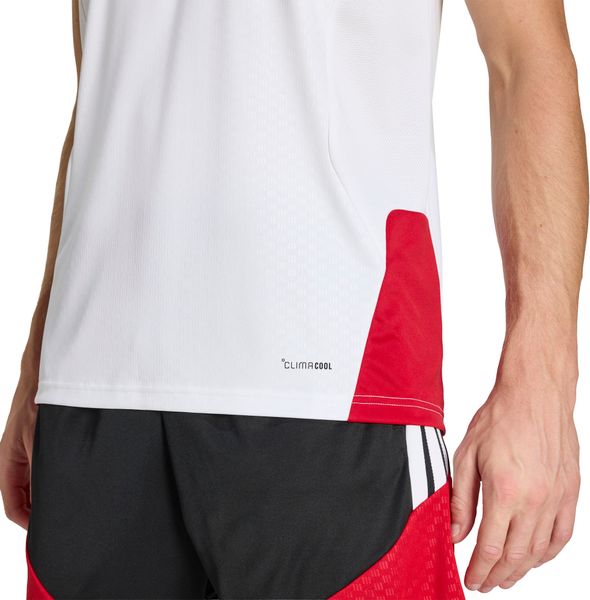 Das schmal geschnittene Design des Trikots passt sich optimal dem Körper an und ermöglicht volle Bewegungsfreiheit, was besonders bei intensiven Workouts von Vorteil ist. Die Mesh-Brusteinsätze bieten zusätzliche Belüftung, um auch bei anstrengenden Übungen für ein angenehmes Tragegefühl zu sorgen. Ein geprägtes Designelement auf der Vorderseite ergänzt das ikonische adidas Logo und das gestrickte 3-Streifen Band, um dem Trikot seinen unverwechselbaren Look zu verleihen.