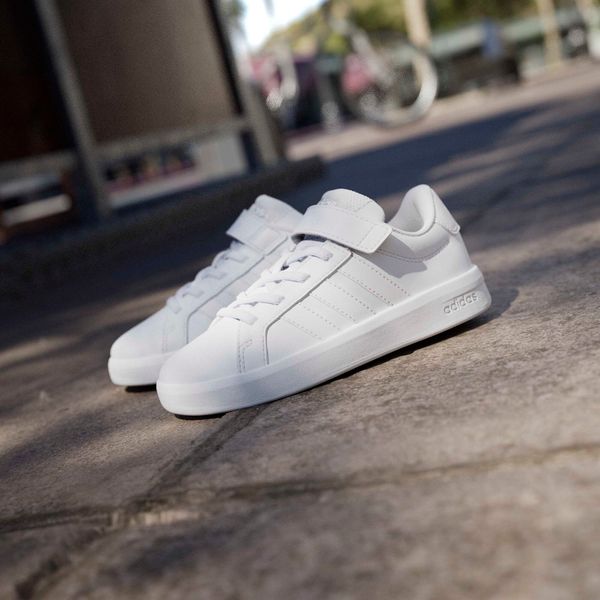 Die Grand Court 3.0 Schuhe für Kinder von adidas bieten ein trendiges Update des ikonischen Grand Court Designs und vereinen Komfort mit einem modernen Look, den Kinder lieben werden. Diese Schuhe sind perfekt für den Alltag und die Freizeit geeignet und bieten durch ihre reguläre Passform optimalen Halt. Der elastische Schnürsenkel, kombiniert mit einem oberen Riemen, ermöglicht ein einfaches An- und Ausziehen, sodass die Kinder schnell für den nächsten Spielspaß bereit sind.