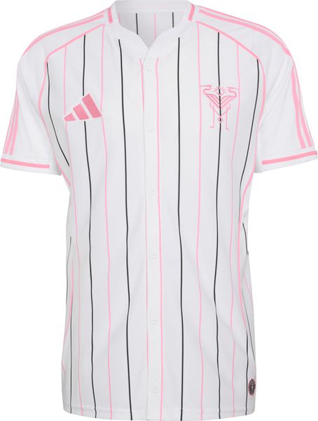 Tauche ein in die Welt der Sportkultur mit dem Inter Miami CF Baseballtrikot von adidas, das den klassischen Charme des Baseballs mit der dynamischen Energie des Fußballs vereint. Dieses Trikot besticht durch sein elegantes Nadelstreifendesign, das eine Hommage an die traditionelle Baseball-Ästhetik darstellt. Die modernen Fußballmotive verleihen dem Trikot einen einzigartigen Twist und machen es zur idealen Wahl für alle, die eine Verschmelzung sportlicher Erben zu schätzen wissen.