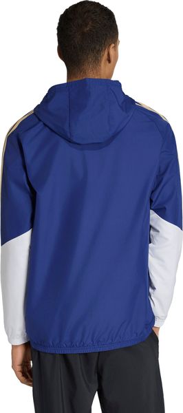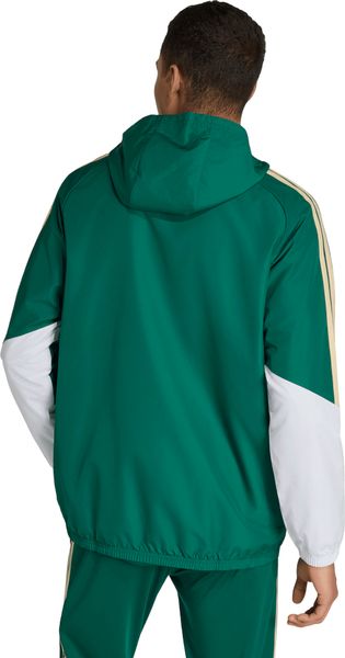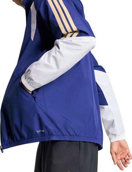 Das Ripstop-Material der Jacke ist nicht nur wasserabweisend, sondern auch winddicht, was sie zur idealen Wahl für wechselhafte Wetterbedingungen macht. Der durchgehende Reißverschluss und die verstaubare Kapuze bieten zusätzlichen Schutz und Flexibilität. Die Jacke ist mit klassischen College-Akzenten und Designelementen versehen, die die stolze Tradition des italienischen Fußballs zitieren, während das aufgedruckte Branding und die ikonischen 3-Streifen von adidas ein sportliches Statement setzen.