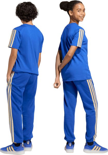 Das klassische French-Terry-Material aus 55 % Baumwolle, 36 % recyceltem Polyester und 9 % Viskose fühlt sich nicht nur weich auf der Haut an, sondern unterstreicht auch die Nachhaltigkeitsbemühungen von adidas. Die reguläre Passform und Schnittlänge machen diese Hose zur idealen Wahl für aktive Kinder, die Wert auf Bewegungsfreiheit legen. Egal, ob beim Anfeuern der Lieblingsmannschaft oder beim Spielen im Freien – diese Hose bietet Komfort und Stil in einem.