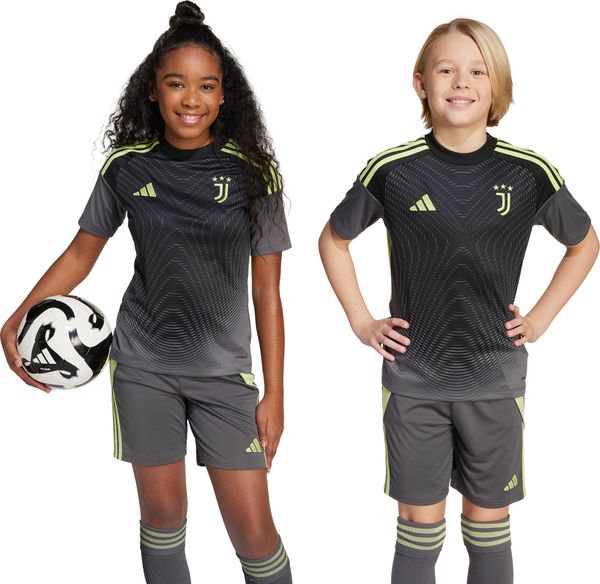 Kindertrikot mit AEROREADY-Technologie für trockenen Komfort, inspiriert von Profispielern, mit Juventus-Logo.