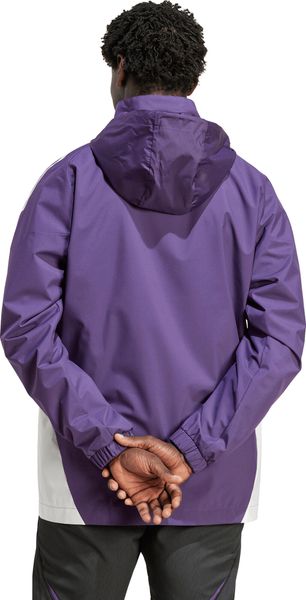 Zeige deine Leidenschaft für Manchester United und trotze gleichzeitig den Elementen mit der adidas Competition All Weather Jacket für die Saison 25/26. Diese Jacke ist nicht nur ein modisches Statement in auffälligem Lila, inspiriert von der Auswärtsausrüstung des Vereins, sondern bietet auch erstklassigen Schutz vor Wind und Wetter. Hergestellt aus 100 % recyceltem Polyester, vereint sie Nachhaltigkeit mit Funktionalität. Die reguläre Passform sorgt für optimalen Tragekomfort, während der durchgehende Reißverschluss und die vorderen Taschen zusätzliche Praktikabilität bieten.