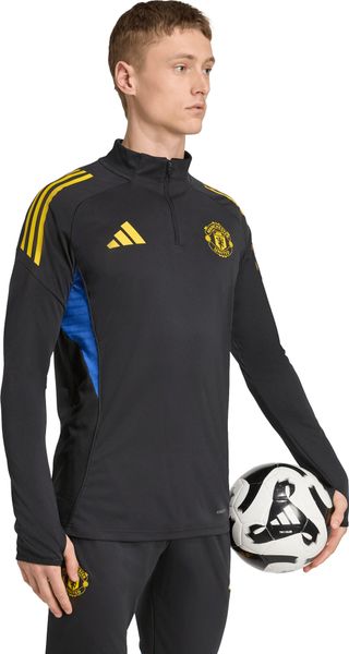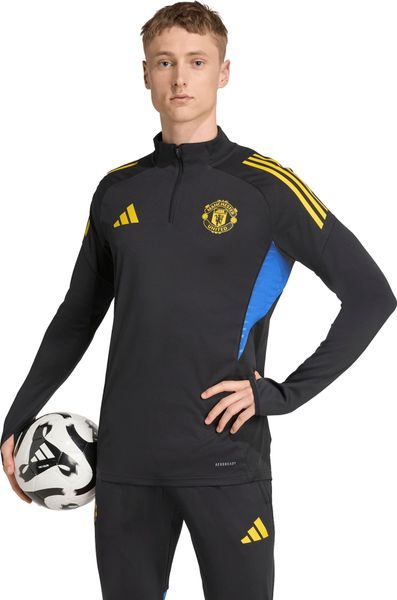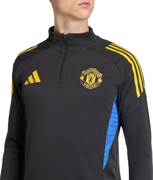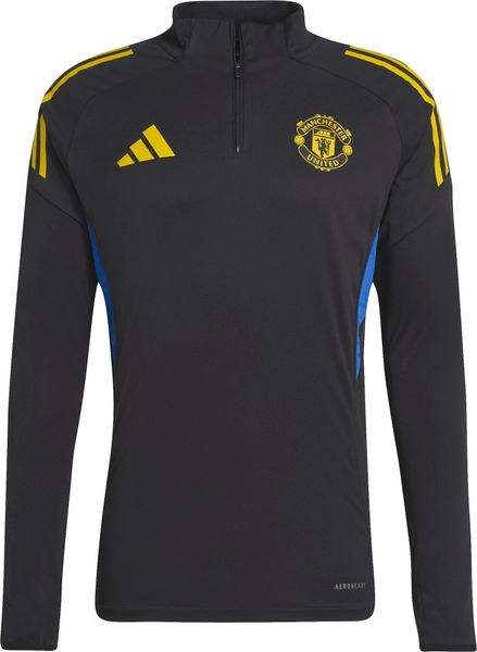 Schwarz-gelbes adidas Trainingstop mit AEROREADY, Daumenöffnungen und Manchester United Logo für optimalen Komfort.