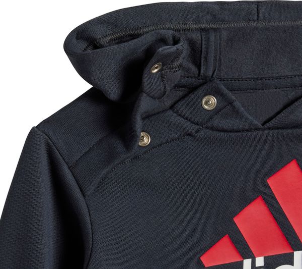 Dieser niedliche Jogginganzug von adidas ist perfekt für kleine Fans von Manchester United. Der Manchester United DNA Baby Jogger vereint Komfort und Stil, damit auch die Kleinsten ihre Begeisterung für den berühmten Fußballverein zeigen können. Hergestellt aus weichem Fleece, bietet der Anzug dank des regulären Schnitts und der elastischen Hose mit Kordelzug höchsten Tragekomfort. Die Kapuze mit Druckknopfverschluss sorgt für zusätzlichen Schutz und Wärme.