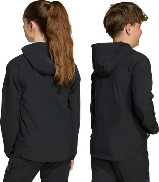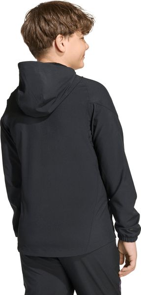 Ausgestattet mit einem durchgehenden Reißverschluss und einer weitenregulierbaren Kapuze mit Gummizug, passt sich die Jacke ideal an verschiedene Wetterbedingungen an. Das feuchtigkeitsregulierende AEROREADY-Material sorgt dafür, dass dein Kind bei jeder Bewegung trocken und bequem bleibt. Die elastischen Bündchen und das Stretch-Material bieten zusätzliche Flexibilität und Komfort. Praktische Reißverschlusstaschen auf der Vorderseite ermöglichen es, kleine Gegenstände sicher zu verstauen.