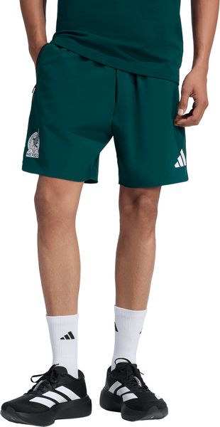 Der mittelhohe Bund dieser Shorts ist mit einem Kordelzug ausgestattet, der eine individuelle Anpassung ermöglicht, sodass die Passform jederzeit sicher und komfortabel bleibt. Egal ob bei alltäglichen Aktivitäten oder auf Reisen, diese Shorts bieten stets einen zuverlässigen Tragekomfort. Das Verbandswappen von Mexiko und das ikonische Performance-Logo von adidas setzen klare Akzente und machen die Shorts zu einem stylischen Statement für Fans, die ihre Identität und ihren Stil selbstbewusst zur Schau stellen wollen.