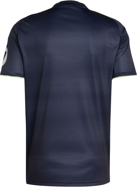 Das schmal geschnittene Trikot bietet mit seinem Rundhalsausschnitt und dem hochwertigen Materialmix aus 100 % recyceltem Polyester ein hervorragendes Tragegefühl. Dank der AEROREADY-Technologie wird Feuchtigkeit effizient reguliert, sodass Sie auch bei hitzigen Auswärtsspielen stets angenehm trocken bleiben. Vervollständigt wird das Design durch das aufgestickte Logo von Real Madrid, das stolz auf der Brust prangt und Ihre Loyalität zum Verein unterstreicht.