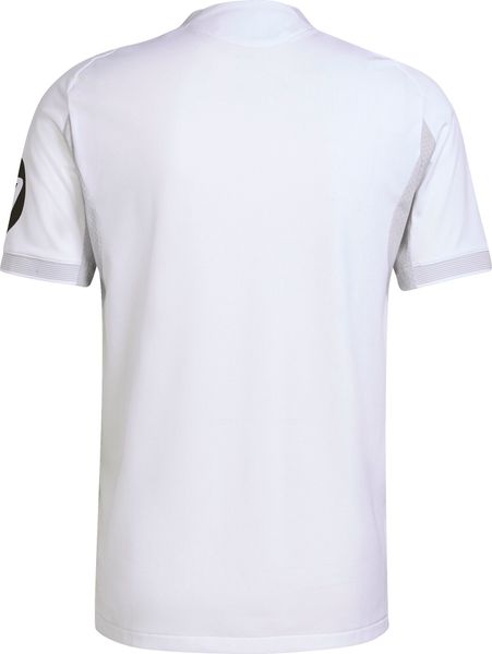Das Trikot ist schmal geschnitten und bietet durch seinen Rundhalsausschnitt und die leistungsorientierte Konstruktion optimalen Tragekomfort und Bewegungsfreiheit. Gefertigt aus 100 % recyceltem Polyester, vereint es Nachhaltigkeit mit hoher Funktionalität. Das Real Madrid Logo, als Thermodruck aufgebracht, verleiht dem Trikot eine moderne Note und inspiriert zu Höchstleistungen auf dem Spielfeld.