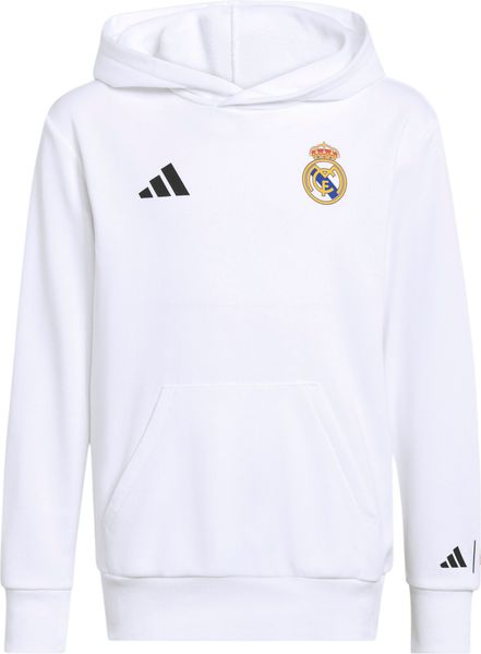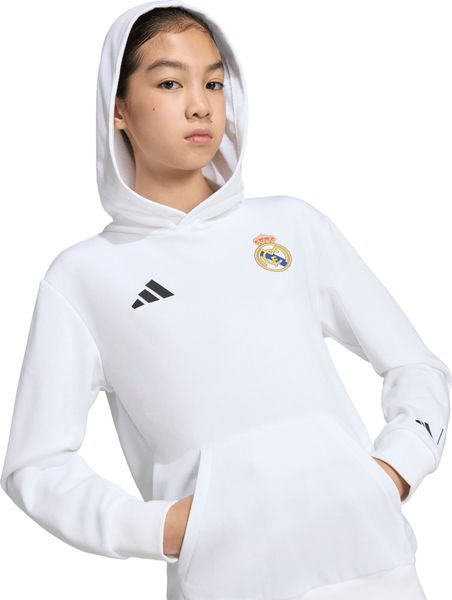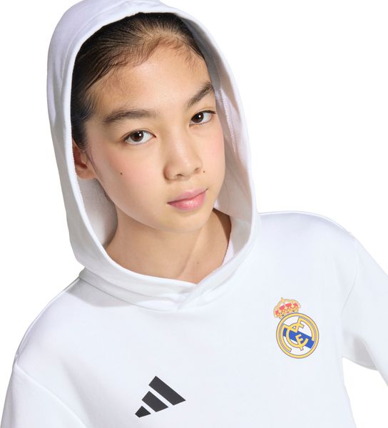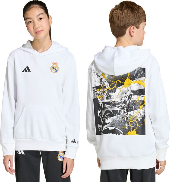 Der adidas Real Madrid Avengers Hoodie für Kinder vereint die Leidenschaft für Fußball mit der Faszination für Superhelden. Diese einzigartige Kombination aus der Welt von Real Madrid und Marvels Avengers bringt die Spannung des Spielfelds und die Abenteuerlust der Comics in den Alltag junger Fans. Der Hoodie ist aus weichem French Terry gefertigt, was ihn besonders angenehm zu tragen macht, sei es beim Spielen im Freien oder im Klassenzimmer. Die reguläre Passform sorgt für Bewegungsfreiheit, während die Kapuze mit Kordelzug zusätzlichen Schutz und Wärme an kühleren Tagen bietet.