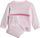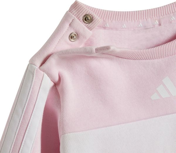 Dieser bezaubernde adidas Jogginganzug für Babys und Kleinkinder ist nicht nur ein Hingucker mit seiner stylischen Farbkombination und den ikonischen 3-Streifen, sondern auch unglaublich bequem. Das kuschelige Fleecematerial sorgt den ganzen Tag für ein angenehmes Tragegefühl, egal ob beim Spielen oder Kuscheln. Mit einem regulären Schnitt und einem mittelhohen Bund bietet der Anzug eine optimale Passform, während der elastische Bund mit Kordelzug für zusätzlichen Komfort sorgt. Die Druckknopfleiste an der Schulter erleichtert das An- und Ausziehen, was besonders bei den Kleinsten von Vorteil ist.