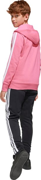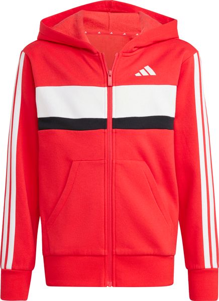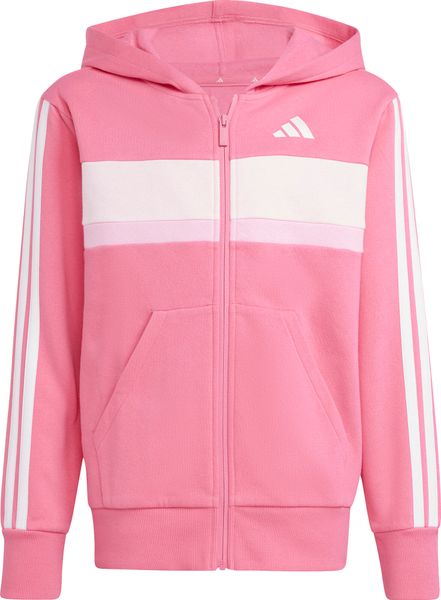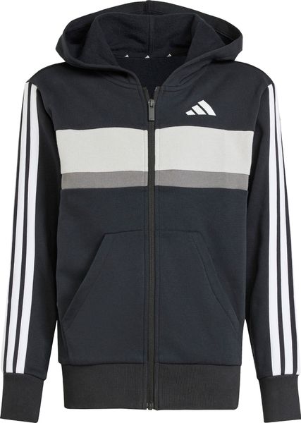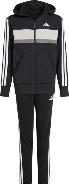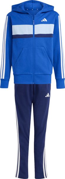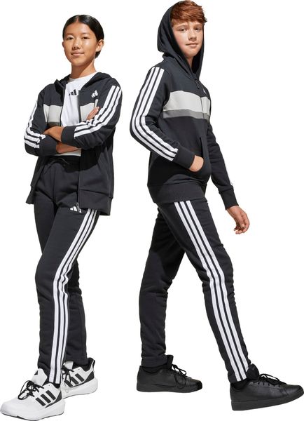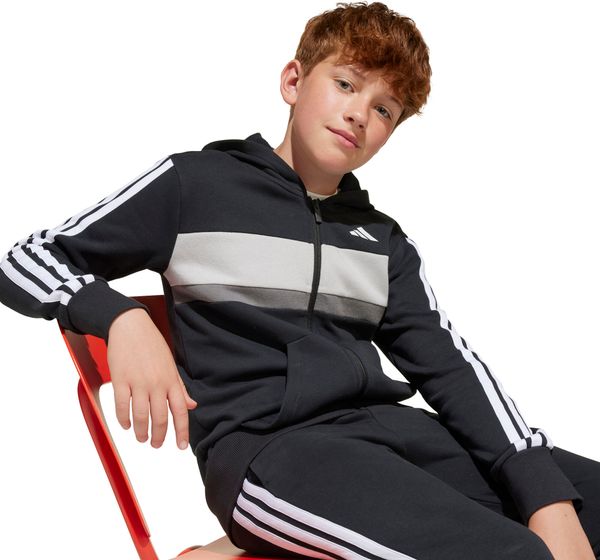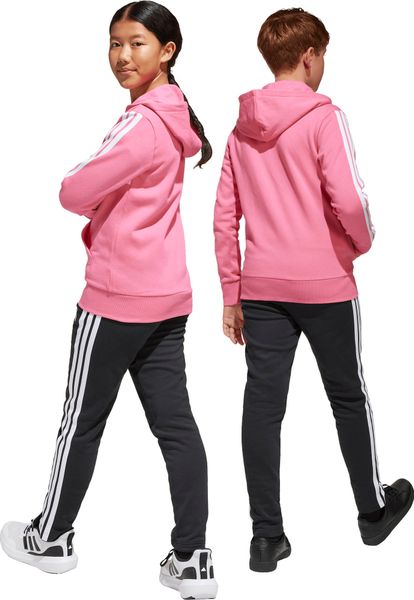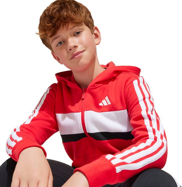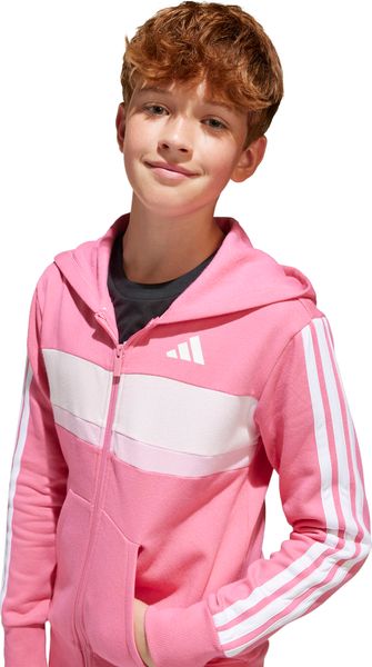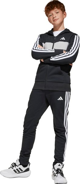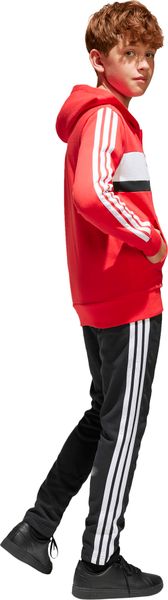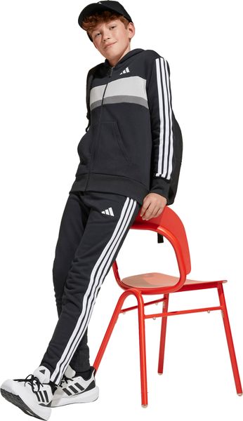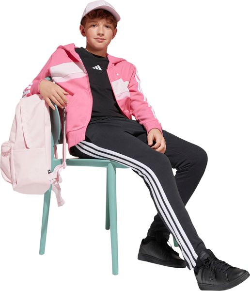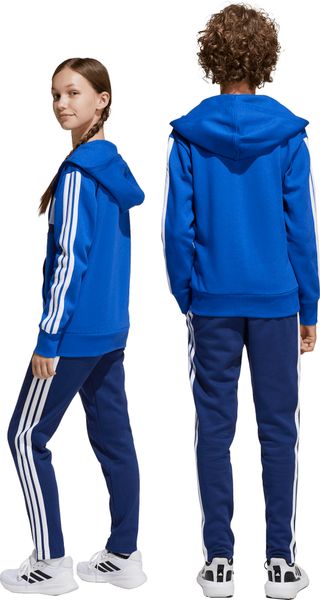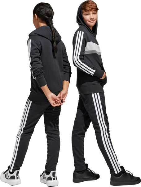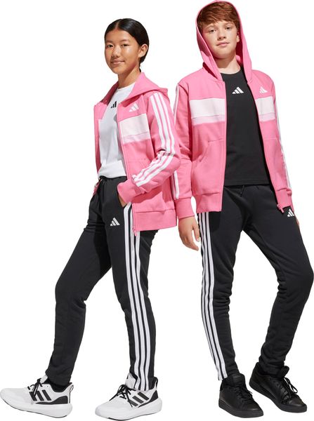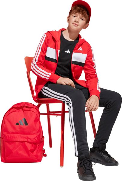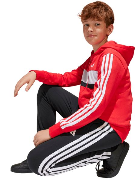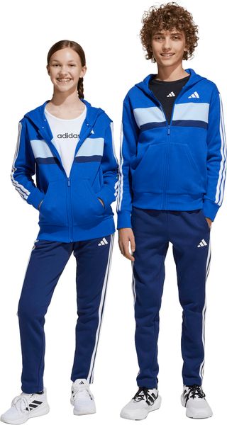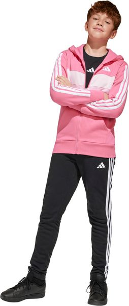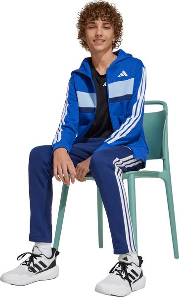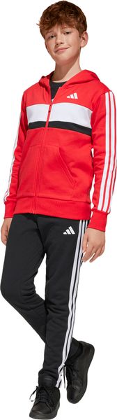 Mit seinem regulären Schnitt und dem mittelhohen Bund passt sich der Trainingsanzug optimal an die Körperform an. Der durchgehende Reißverschluss und die Kapuze bieten praktische Funktionen, während die Kängurutaschen und seitlichen Taschen ausreichend Platz für kleine Gegenstände bieten. Der elastische Bund mit Kordelzug sorgt zudem für einen sicheren Sitz. Die legendären 3-Streifen verleihen dem Anzug einen sportlichen Look, der sich perfekt für den Weg zur Schule oder Treffen mit Freunden eignet.