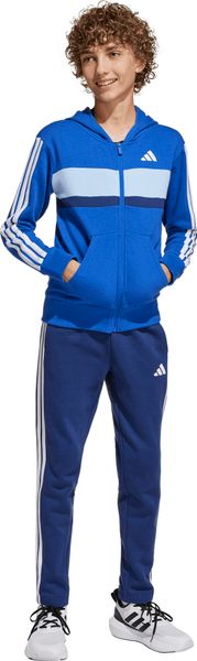 Der adidas Seasonal Essentials Tiberio 3 Stripes Fleece Trainingsanzug ist der ideale Begleiter für Kinder und Teens, die sowohl Komfort als auch Stil schätzen. Gefertigt aus einem weichen, auf der Innenseite angerauten Material, bietet dieser Anzug an kälteren Tagen wohlige Wärme. Die Rippdetails an Bündchen und Saum sorgen zusätzlich für ein angenehmes Tragegefühl. Ob in der Freizeit, im Alltag oder beim Fitness- und Training, dieser Anzug ist vielseitig einsetzbar.