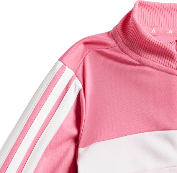 Der Seasonal Essentials Tiberio 3 Stripes Tricot Trainingsanzug von adidas ist der perfekte Begleiter für Fitness und Training. Mit seinem regulären Schnitt und dem mittelhohen Bund bietet er optimalen Komfort und Bewegungsfreiheit. Der durchgehende Reißverschluss und der Stehkragen verleihen der Jacke einen klassischen Look, während die Kängurutaschen praktische Aufbewahrungsmöglichkeiten bieten. Das Colourblocking-Design sorgt für einen modischen Akzent.