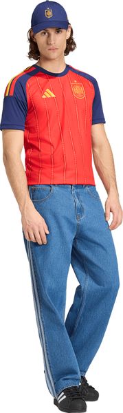 Der schmale Schnitt des Trikots passt sich optimal deinen Bewegungen an und bietet gleichzeitig einen modernen Look. Der gerippte Halsausschnitt verleiht dem Trikot einen klassischen Touch, während die ikonischen 3-Streifen von adidas und das aufgenähte Team- sowie Vereinslogo das Design stilvoll abrunden. Dieses Trikot ist nicht nur ein Muss für jeden Fan, sondern auch ein Ausdruck deines Stolzes auf das spanische Nationalteam, egal ob du auf der Tribüne mitfieberst oder selbst auf dem Platz stehst.