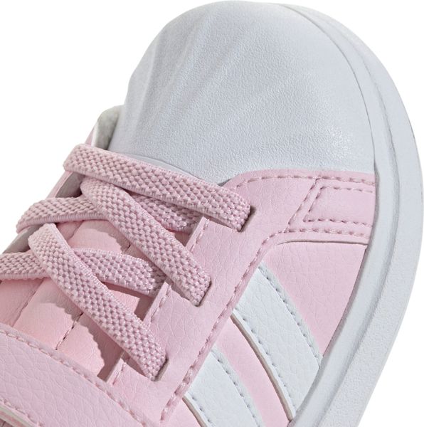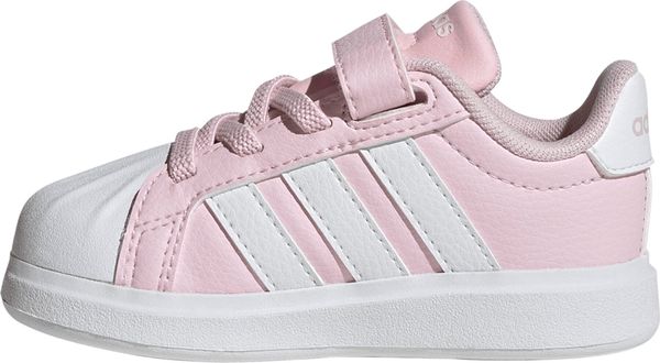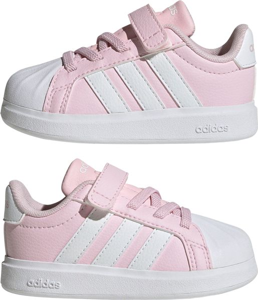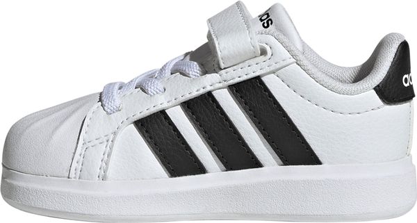 Für die kleinen Entdecker von heute sind die Streettalk Shoes Infants von adidas der perfekte Begleiter. Diese Sneaker vereinen Stil und Funktionalität, indem sie den klassischen Look einer Zehenkappe aus Gummi in ein modernes Design für Babys und Kleinkinder integrieren. Mit einer weiten Passform bieten sie optimalen Komfort für die kleinen Füße, während elastische Schnürsenkel und praktische Klettverschlussriemen das An- und Ausziehen kinderleicht machen. Das synthetische Obermaterial sorgt in Kombination mit einem weichen Textilfutter für ein angenehmes Tragegefühl, das selbst den aktivsten Alltag mitmacht.