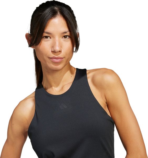 Ein integrierter, verstärkter Sport-BH bietet zusätzlichen Halt und Komfort, während der Mesh-Einsatz auf der Rückseite für eine verbesserte Belüftung sorgt. Das Tanktop besteht zu 79 % aus recyceltem Polyester und zu 21 % aus Elasthan, was nicht nur für ein angenehmes Tragegefühl sorgt, sondern auch einen wichtigen Beitrag zur Nachhaltigkeit leistet. Durch die Verwendung von recycelten Materialien trägt adidas dazu bei, Abfall zu reduzieren und die Abhängigkeit von nicht erneuerbaren Ressourcen zu minimieren, was den CO2-Fußabdruck der Produkte verringert.