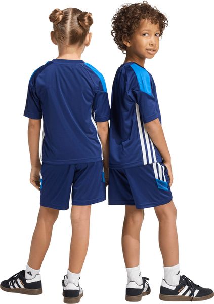 Das Tiro 26 Essentials Jersey Shorts SET von adidas für kleine Kinder vereint sportliche Energie mit alltagstauglichem Design. Dieses Set, bestehend aus einem Trikot und Shorts, bringt den Spirit des Fußballs auf den Spielplatz und in den Alltag. Mit klaren Designlinien und auffälligem Colourblocking strahlt es Sportlichkeit aus und ist perfekt auf Bewegung und Komfort ausgerichtet. Dank der innovativen CLIMACOOL Technologie bleibt die Haut angenehm kühl und trocken, indem Feuchtigkeit effektiv abgeleitet wird.