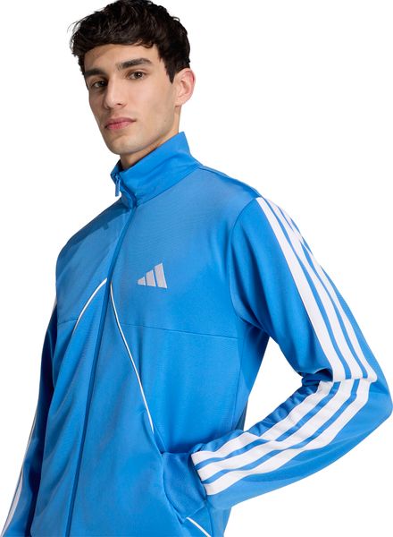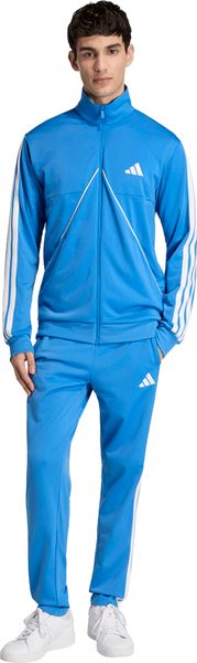 Der Tiro Inspired Tracksuit von adidas kombiniert sportlichen Retro-Charme mit moderner Funktionalität und eignet sich perfekt für Fitness und Training. Das vom klassischen Tiro Design inspirierte Set besteht aus einem Oberteil mit durchgehendem Reißverschluss und Stehkragen sowie einer Hose mit schmal zulaufender Beinform. Dank des leicht schimmernden Trikotmaterials aus 100 % recyceltem Polyester fühlt sich der Anzug angenehm weich auf der Haut an und ist zugleich umweltfreundlich. Seitentaschen im Oberteil bieten praktischen Stauraum, während Rippdetails an Bündchen und Saum für einen sicheren Sitz sorgen. Die Hose ist mit einem elastischen Bund und Kordelzug ausgestattet, der eine individuelle Passform ermöglicht. Mit diesem Trainingsanzug setzt adidas auf Nachhaltigkeit, indem bereits vorhandene Materialien wiederverwendet werden, um den CO2-Fußabdruck zu verringern und die Abhängigkeit von nicht erneuerbaren Ressourcen zu minimieren.