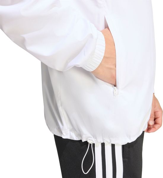 Das adidas Siebdrucklogo und die ikonischen 3-Streifen verleihen dem Windbreaker eine subtile Eleganz, die sich perfekt mit den elastischen Bündchen ergänzt, um einen passgenauen Sitz zu garantieren. Die Brusteinsätze fügen einen athletischen Touch hinzu, der die perfekte Balance zwischen Mode und Funktionalität schafft. Egal, ob du dich auf dem Spielfeld oder in der Freizeit befindest, dieser Windbreaker ist dein zuverlässiger Begleiter. Sein regulärer Schnitt sorgt für einen bequemen Sitz, der dir Bewegungsfreiheit bei all deinen Aktivitäten bietet.
