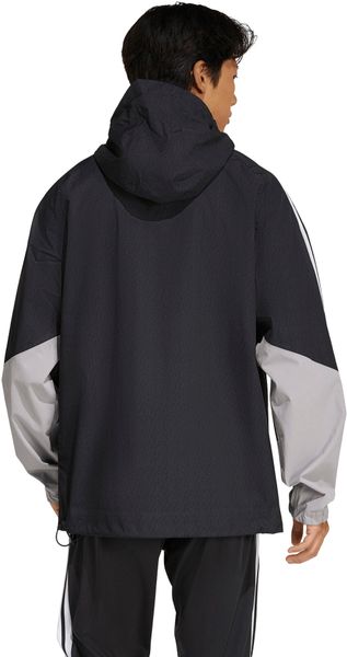 Die Jacke besteht aus 100% recyceltem Polyester außen und 100% Polyurethan innen, was sie nicht nur robust, sondern auch umweltfreundlich macht. Die Dobby-Konstruktion und die atmungsaktiven Einsätze sorgen dafür, dass Feuchtigkeit effizient nach außen transportiert wird, sodass du auch bei intensiven Aktivitäten einen hohen Tragekomfort genießen kannst. Der reguläre Schnitt bietet eine ausgewogene Mischung aus Bewegungsfreiheit und sicherem Sitz, während der durchgehende Reißverschluss das An- und Ausziehen erleichtert. Mit den markanten adidas Branding-Elementen setzt du zudem ein modisches Statement.