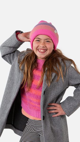 Elastische und weiche Mädchenmütze, die sich perfekt mit dem Kinabala Col kombinieren lässt.