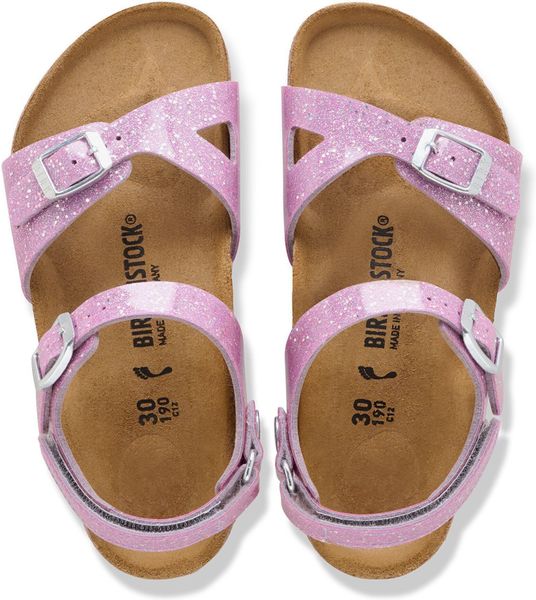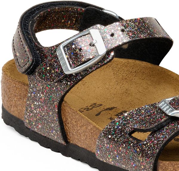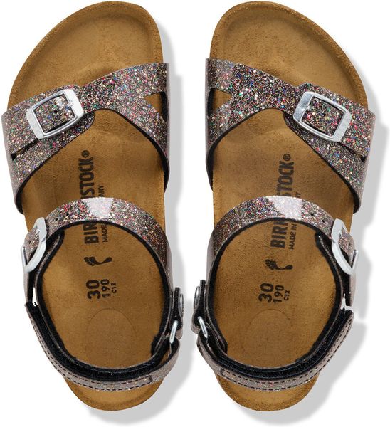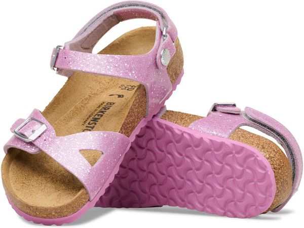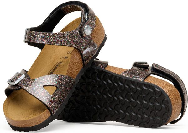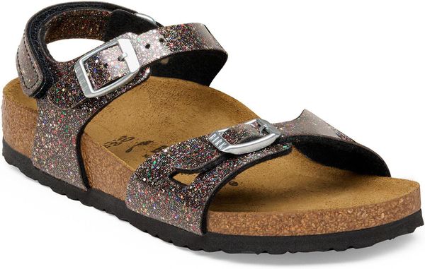 Die BIRKENSTOCK Rio AS K Birko-flor Sandale ist die perfekte Kombination aus sportlicher Eleganz und hohem Tragekomfort, ideal für aktive Mädchen im urbanen Alltag oder bei der Arbeit. Der anatomisch geformte Kork-Latex-Fußbett unterstützt die natürliche Fußbewegung und sorgt für ein unvergleichliches Laufgefühl. Das Obermaterial aus Birko-Flor® ist nicht nur hautfreundlich und strapazierfähig, sondern glänzt auch mit einem modischen Glitzer-Effekt und einer Hochglanzbeschichtung, die die Sandale besonders strahlen lässt.