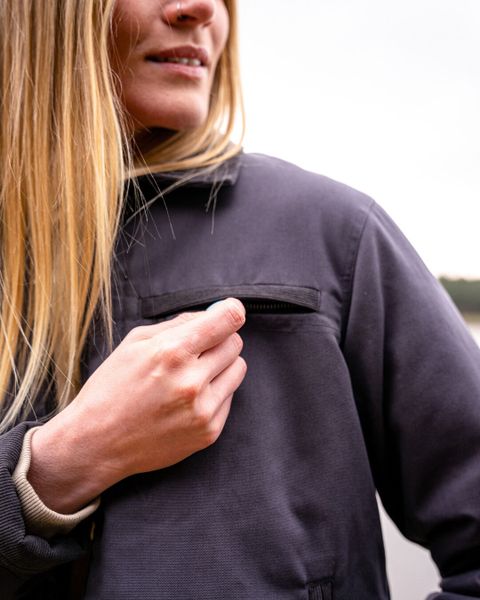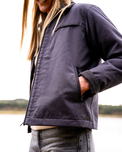 Diese Jacke ist in den Größen XS bis XXL erhältlich und bietet eine perfekte Passform für Frauen, die Wert auf Qualität und Stil legen. Die aufgesetzte Innentasche aus Canvas-Stoff bietet zusätzlichen Stauraum und unterstreicht den funktionalen Charakter dieser stilvollen Jacke.