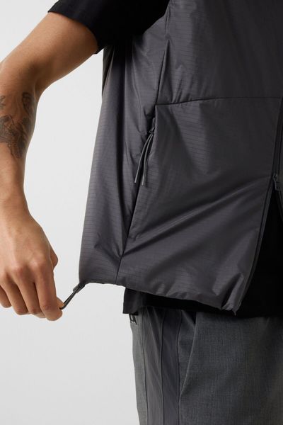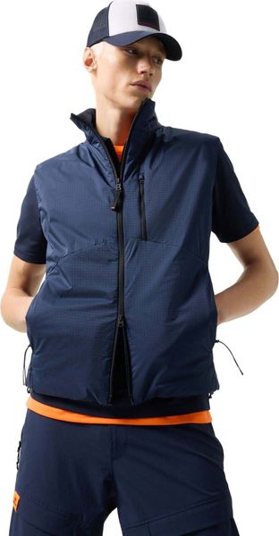 Hergestellt aus atmungsaktivem Material mit einer Atmungsaktivität von 10.000 g/m²/24h und einem wasserabweisenden Finish, ist die Weste nicht nur stilvoll, sondern auch funktional. Die wärmende Wattierung aus technischen Fasern sorgt für angenehmen Tragekomfort, selbst bei kühleren Temperaturen. Der Saumabschluss mit Tunnelzug und Stopper ermöglicht eine individuelle Anpassung und optimiert die Passform.