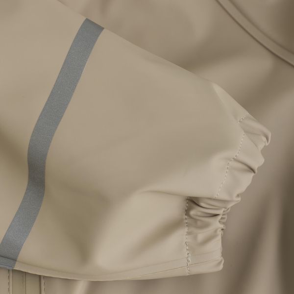 Die Regenjacke ist mit einem hochwertigen, wasserdichten Reißverschluss ausgestattet und verfügt über eine abnehmbare, verstellbare Kapuze, die bei Bedarf optimalen Schutz bietet. Gummizüge an Handgelenken, Kapuze und Taille verhindern das Eindringen von Wasser und Luft und sorgen für einen angenehmen Tragekomfort. Reflektierende Details an Ärmeln, Beinen und Kapuze erhöhen die Sichtbarkeit bei schlechten Lichtverhältnissen und tragen zur Sicherheit bei.