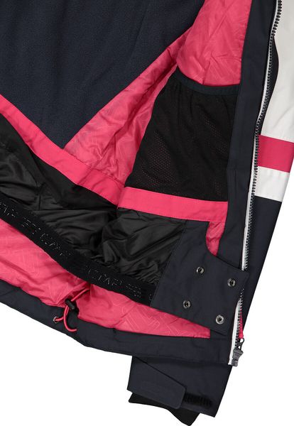 Der wasserdichte Frontreißverschluss verhindert das Eindringen von Feuchtigkeit und bietet zusammen mit den vier praktischen Taschen – zwei seitliche, eine auf der Brust und eine am Handgelenk – ausreichend Platz für alle wichtigen Kleinigkeiten. Diese Skijacke ist nicht nur funktional, sondern auch stilvoll und somit die perfekte Wahl für alle Winterabenteuer.