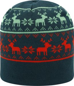Doppelseitige Strickmütze für Jungen mit Bergmuster, warm und stilvoll für winterliche Abenteuer.