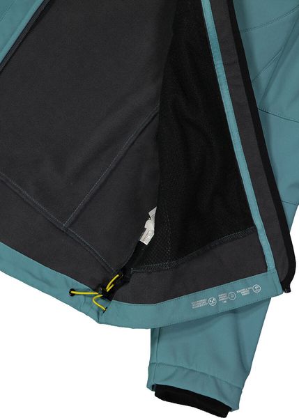 Besonders praktisch ist die abnehmbare Kapuze, die sich individuell mit einem Zugband anpassen lässt. Die Jacke verfügt über zwei Seitentaschen und eine Brusttasche, die alle mit Reißverschlüssen ausgestattet sind, um persönliche Gegenstände sicher zu verstauen. Der Saum kann dank der Schnürung individuell angepasst werden, um einen perfekten Sitz zu gewährleisten. Der innen mit Fleece gefütterte Kragen und die Fleece-Bündchen an den Ärmeln bieten zusätzlichen Komfort und Wärme.