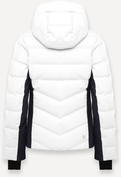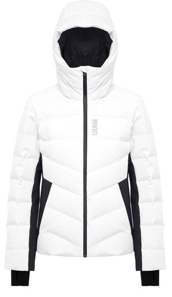 Praktische Details wie die feste Kapuze mit Tunnelzug, wasserdichte Reißverschlüsse, Seitentaschen mit Reißverschluss und eine spezielle Skipass-Tasche machen die Jacke besonders funktional. Innenbündchen aus Stretch und ein integrierter Schneefang bieten zusätzlichen Schutz gegen die Elemente. Der Schlüsselhaken in der Tasche und der Karabinerhaken für Handschuhe sorgen dafür, dass wichtige Utensilien sicher verstaut sind. Das applizierte Colmar-Logo auf der Brust rundet das Design stilvoll ab.